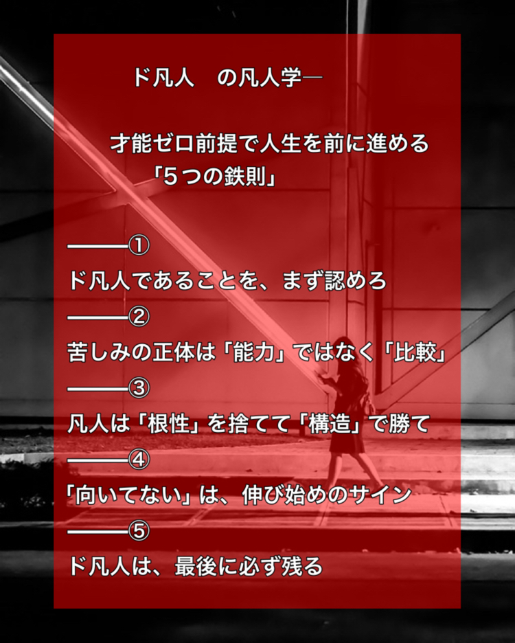- ⸻① ド凡人であることを、まず認めろ
