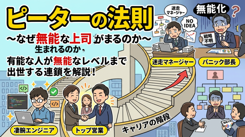 1969年に教育学者のローレンス・J・ピーターによって提唱された「階層組織において、人は自らの能力の限界まで出世し、最終的には無能化する」という社会学的な法則です。